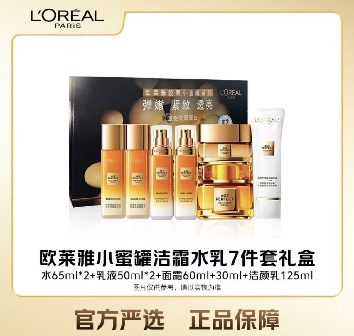 欧莱雅 花蜜小蜜罐套装 (洁面125+霜60+30水65*2乳液50*2)ml